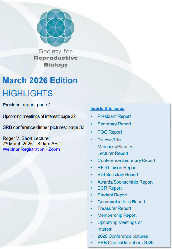 The journal welcomes submissions from SRB members. To find our more about Reproduction, Fertility and Development and to submit your paper, visit the journal’s homepage at https://connectsci.au/pages/publish-with-us. View the ‘Just Accepted” articles by clicking on the heading above